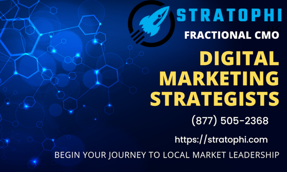 Fractional CMO Services - Stratophi, LLC provides the comprehensive digital marketing strategies and services needed to position your business as a market leader. Our pipe line consists of 19 proprietary programs that unleash the power of the four key elements needed for digital marketing success. Contact us today and learn how increase conversions and paying customers faster than you ever thought possible."
